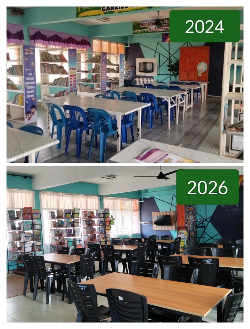 Penyerahan sumbangan untuk pembelian meja Pusat Sumber Sekolah Kebangsaan Seri Kemaman oleh wakil pihak SMNY iaitu Encik Khairul manakala Guru Pusat Sumber Skets Cikgu Afiq mewakili pihak sekolah.